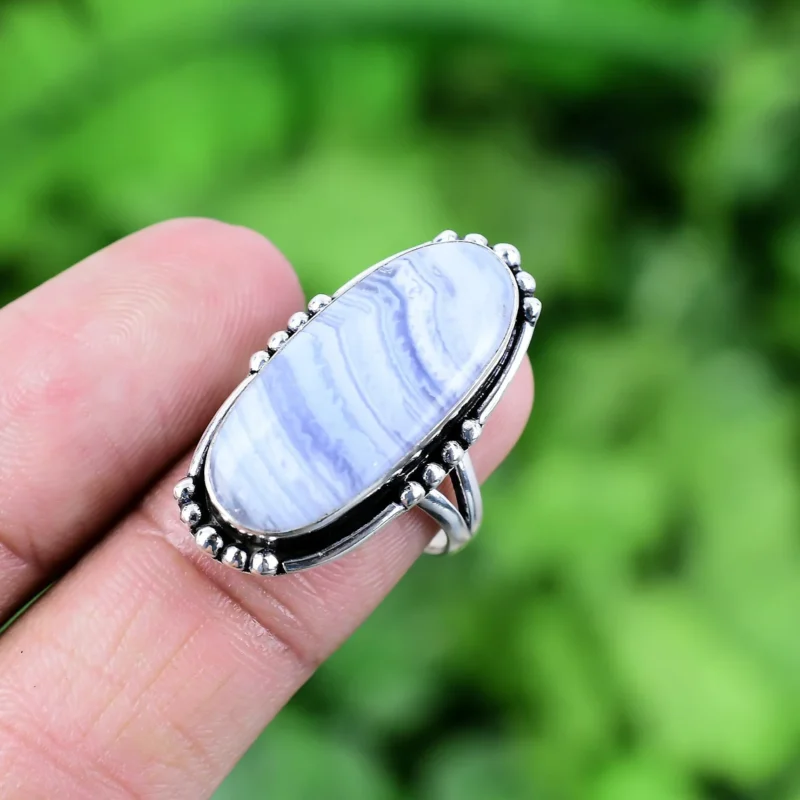 Namibian Blue Lace Agate Ring 925 Sterling Silver Ring
