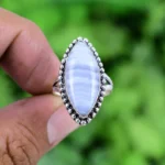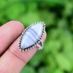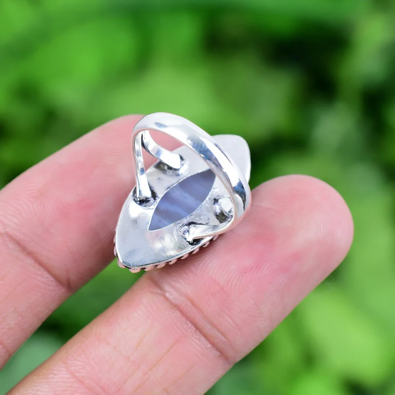 Namibian Blue Lace Agate Ring 925 Sterling Silver Ring Genuine Gemstone Bohemian Ring Handmade Silver Jewelry Ring Gift For Her RJS33